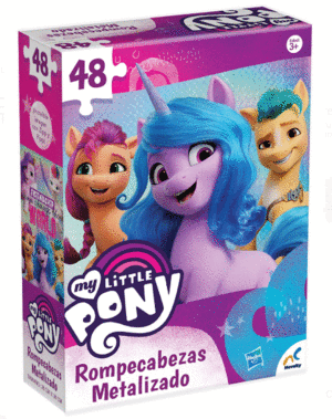 Rompecabezas de 48 piezas con un increíble efecto de brillo metalizado en su divertido diseño de My Little Pony.